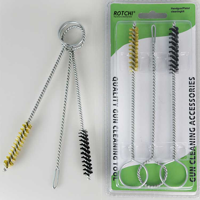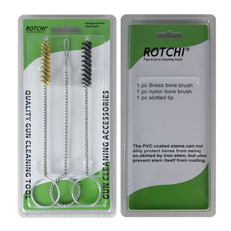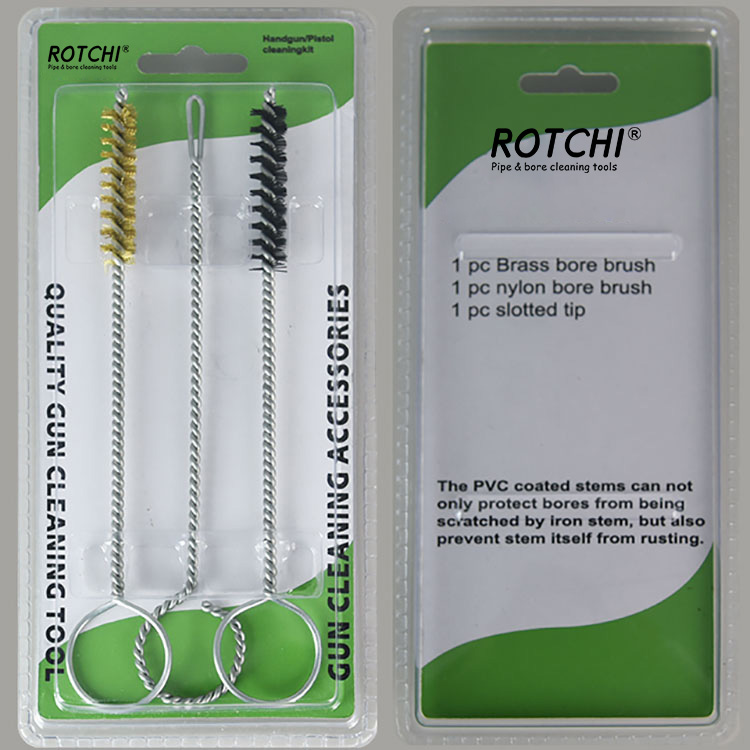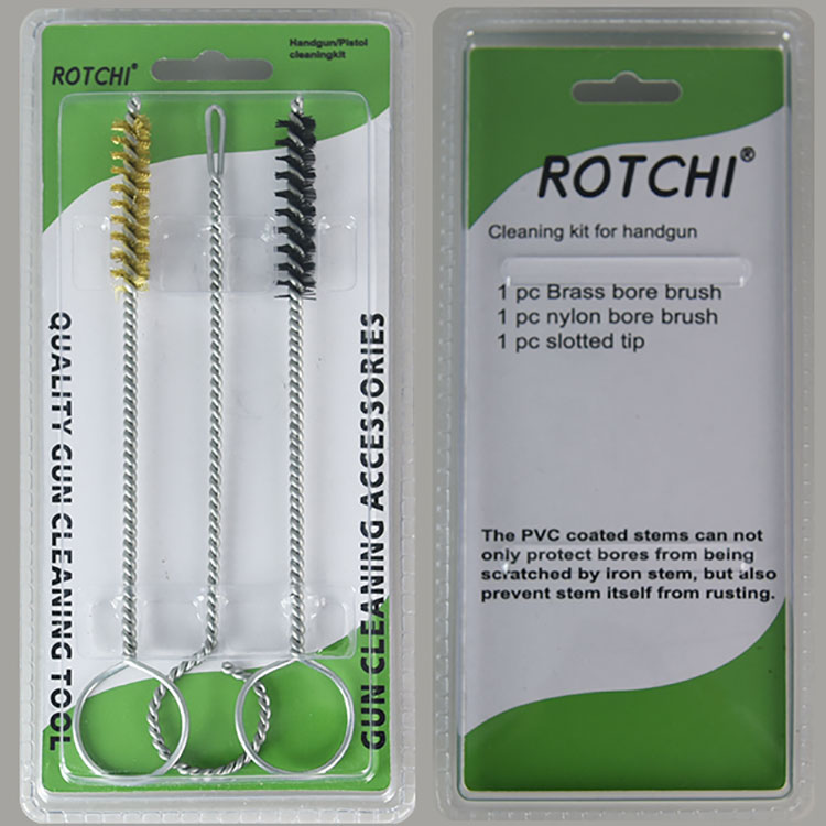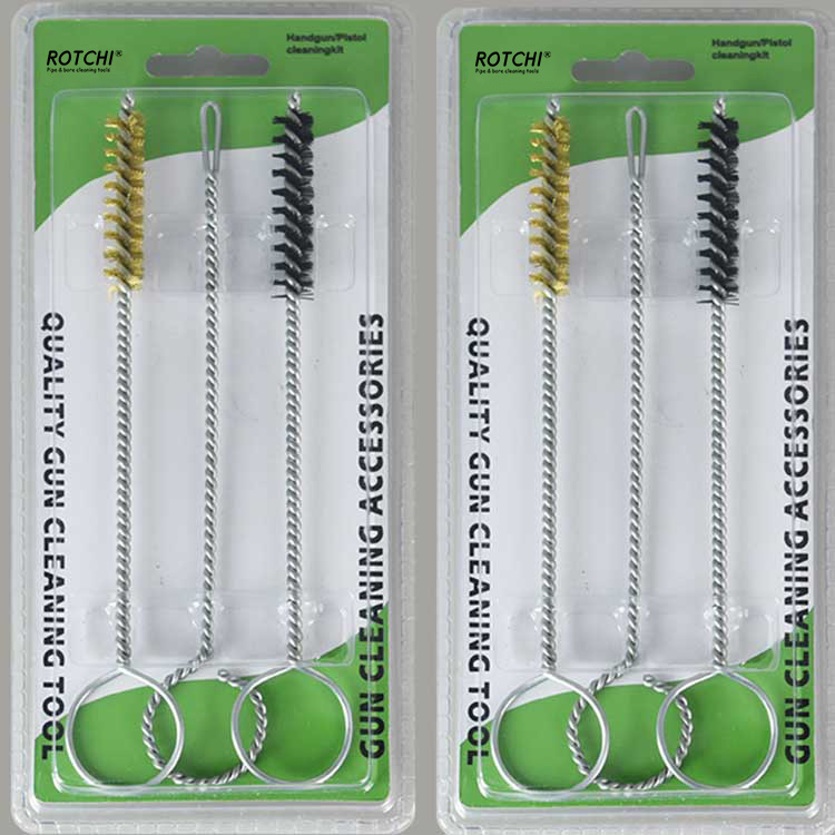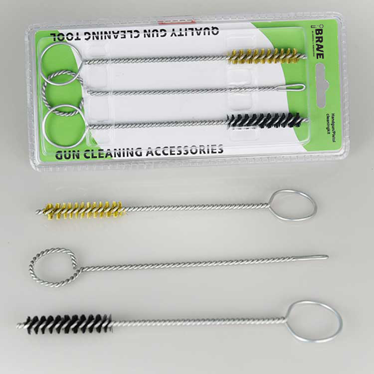3 ədəd sethandgun cleaing dəsti, ikiqat blisterə yığılmışdır. Bir pirinç, təmizləyici fırça, bir neylon təmizləyici fırça və bir yuvalı yamaq sahibi. Lazımlı və effektiv.
