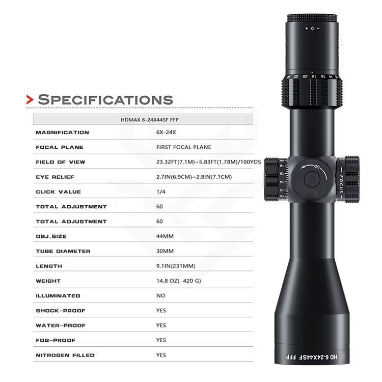 HD Max 6-24x44 SF FFP HD HID HD LENS Ov Monokular Teleskopu Topdan