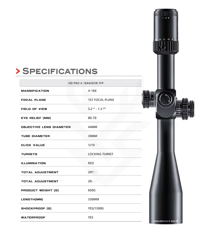 Optics HD Pro 4-16x44 SFIR FFP Yüksək şok müqavimət ovçuluq üçün taktiki uzun məsafəli atış 30mm boru