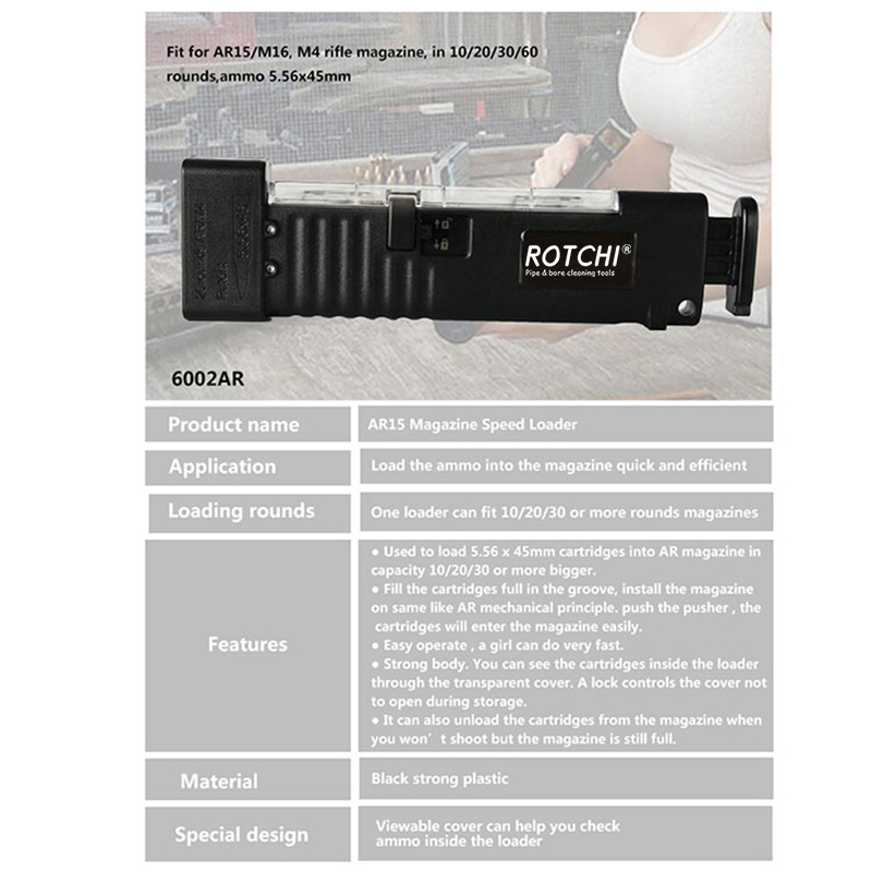 ● 5.56 x 45mm patron 5/20/30 və ya daha çox gücdə AR jurnalına yükləmək üçün istifadə olunur.