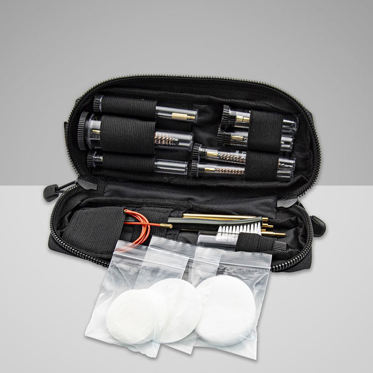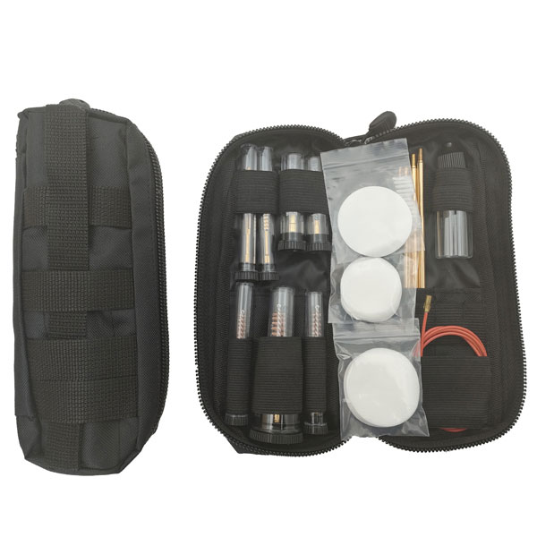 Taktik çanta, molle sistemi üçün nəzərdə tutulmuş əla tikilmiş 600D parça, tamamlandı tüfənglər üçün silah təmizləmə dəstləri .177kal./4.5mm, .223cal./5.56mm. Mis buruq təmizləyici fırçalar, mis çəngəllər, kamera təmizləyici fırça (.223) hər biri öz boru qabığına yığılır və əlləri sancmaqdan qoruyur. O, həmçinin iki uclu köməkçi fırça, təmizləyici yamaqlar, həmçinin 5 mis təmizləyici çubuq (diametri 5 mm, tam iş uzunluğu 32 düym/820 mm) .177 kal. üçün 32 düym/820 mm qırmızı elastik kabel, çəkmə və çubuq tutacağına malikdir. Kiçik ölçüsü daşımaq asandır.