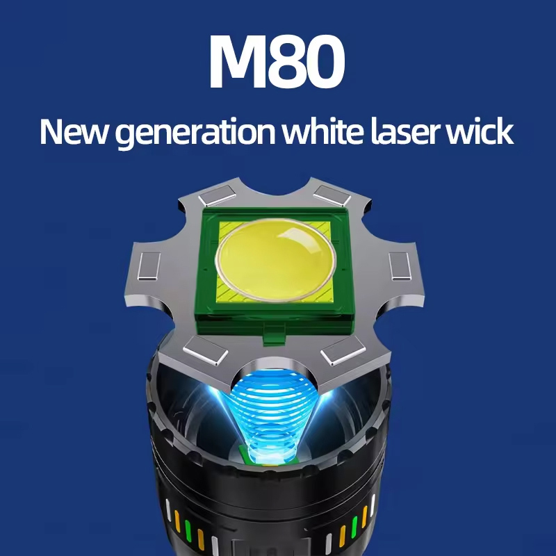 Çoxfunksiyalı Güclü fənər Type-c Şarj edən Teleskopik Fokuslu Ağ Lazer Super Fənər