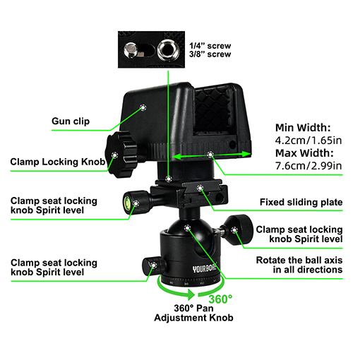 OEM CNC Alüminium 360 dərəcə topu başçısı atəş yəhəri ovlamaq üçün istirahət çubuğu monopod tripod