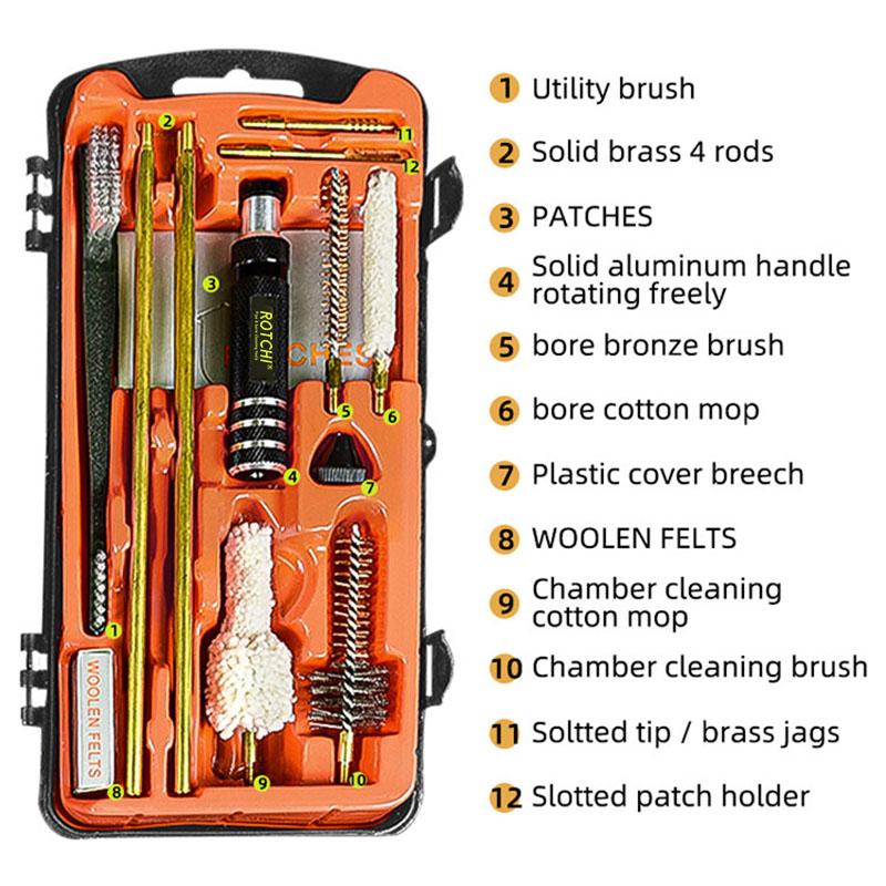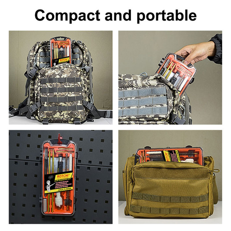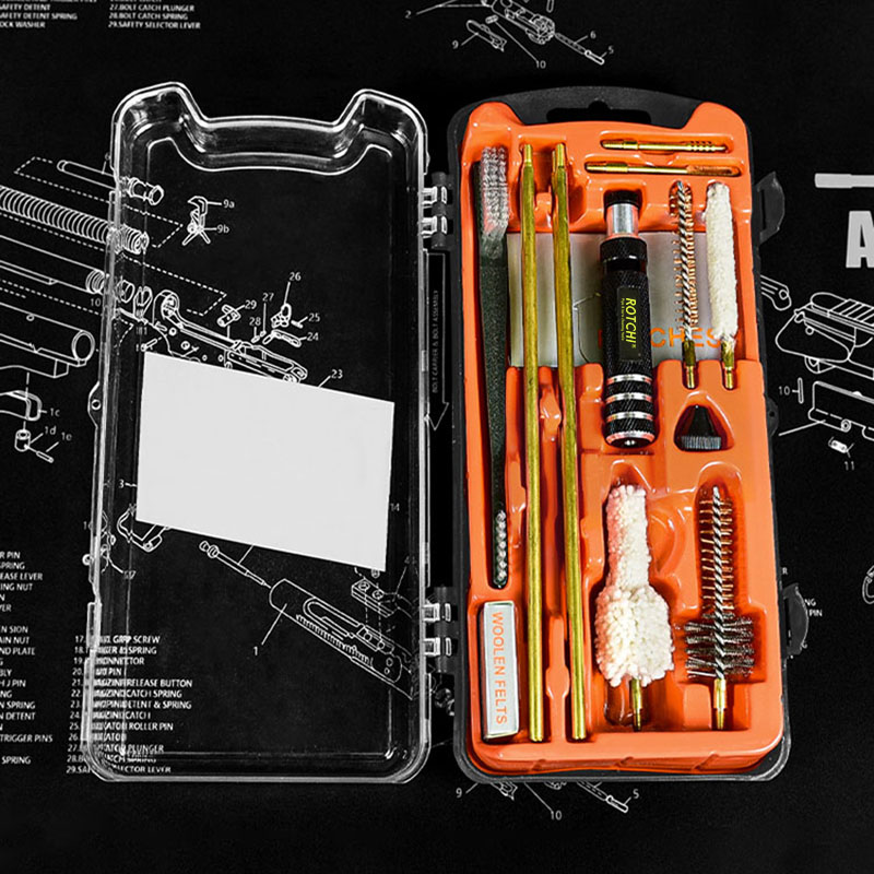 Xarici silah təmizləmə dəsti tüfəng dəsti müxtəlif silah çaplarına cavab vermək üçün sizə tam peşəkar təmizləmə alətləri təqdim edir. Blister qablar onları müntəzəm olaraq toplamağa kömək edir.