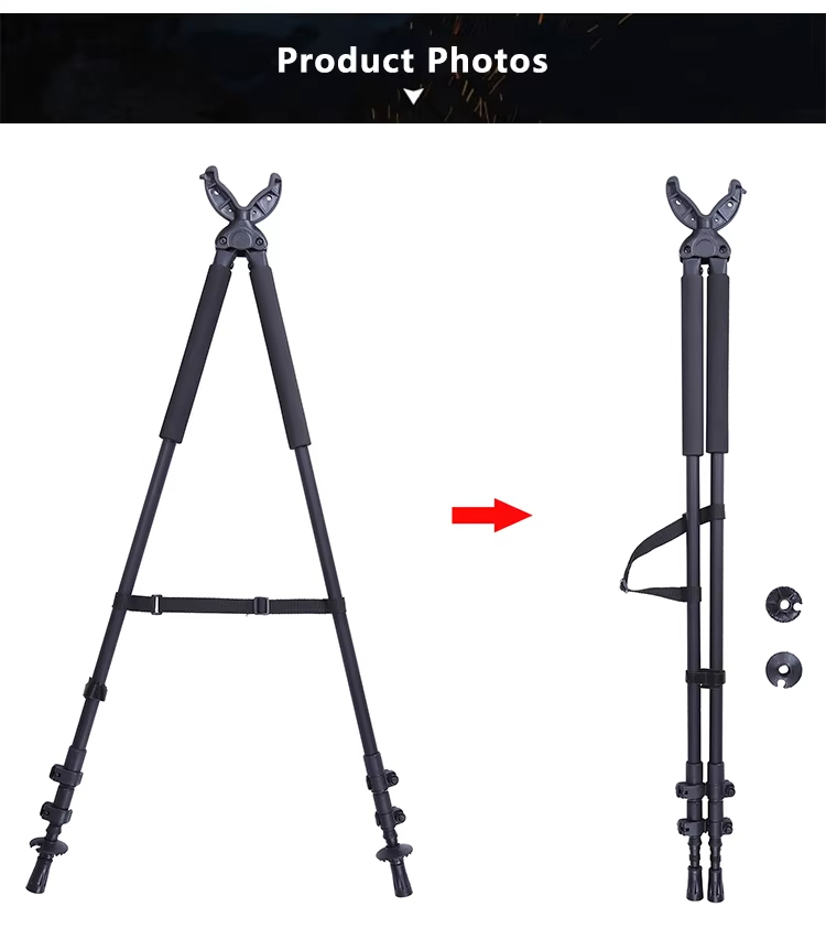 Açıq taktiki silah portativ tripod dəstəyi ov teleskopik atəş çubuğun v şəkilli fırlanan boyunduruğu tripod