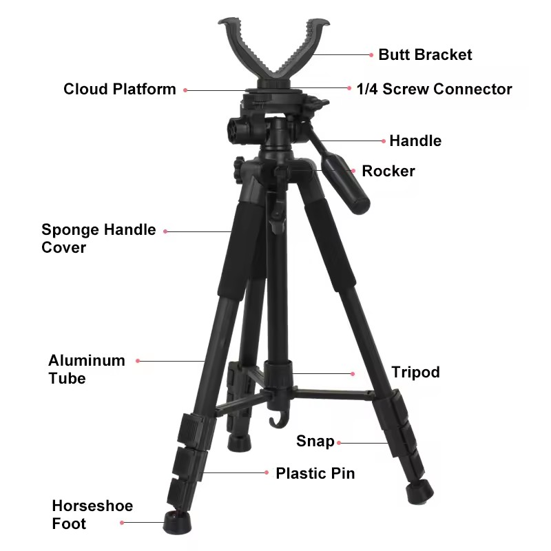 Açıq taktiki silah portativ tripod dəstəyi ov teleskopik atəş çubuğun v şəkilli fırlanan boyunduruğu tripod
