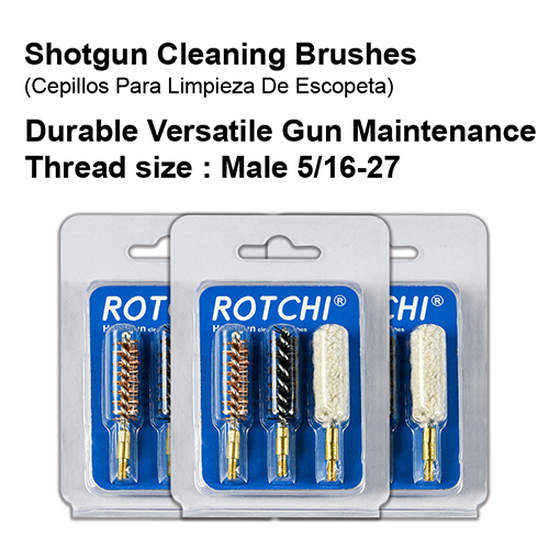 Ov tüfəngi təmizləyici fırça 3-ü 1-də dəst, blister və kart paket. Mövcud ölçülər: 12G, 16G, 20G, 410