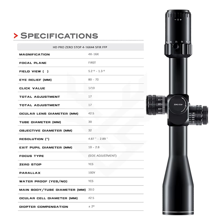 Sıfır Stop 4-16x44 SFIR FFP-A 30mm Diametri HD İşıq ötürücü Zero Stop Ovçuluq Sahəsi FFP